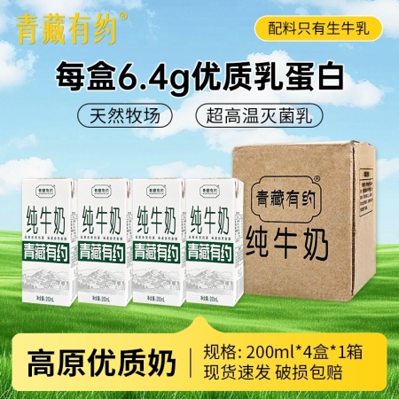 x新日期200ml*4盒宁夏青藏有约纯牛奶高原纯牛奶学生早餐