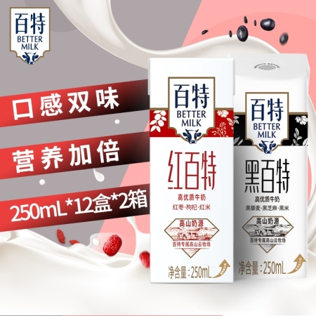 天友红黑百特牛奶组合装250ml*12盒整箱灭菌调制乳营养营养早餐奶