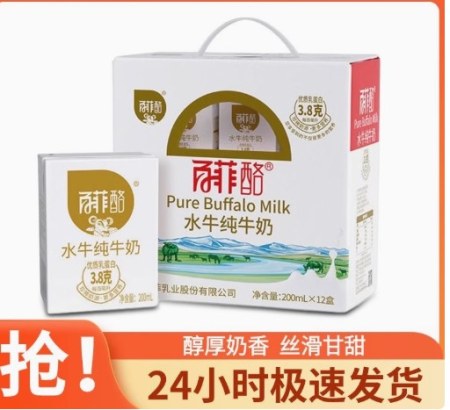 200ml*12盒皇氏乳业皇家水牛纯牛奶4.0蛋白质