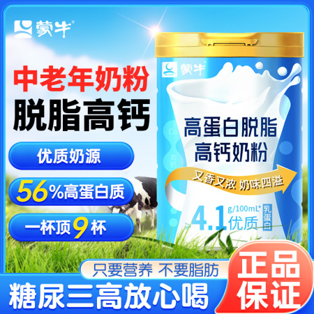 蒙牛中老年奶粉无糖精脱脂糖尿人专用老人高钙高蛋白脂肪0低脂