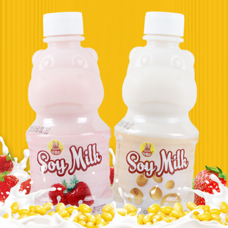 河马莉常温豆奶饮料原味草莓味320ml塑料瓶装饮料批发豆奶饮品