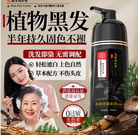 胖东来南京同仁堂一洗黑纯植物正品自然黑不沾头皮天然植物盖白染发膏