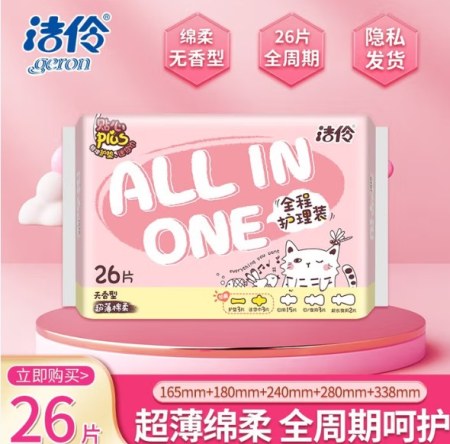 洁伶卫生巾 少女全程护理装卫生巾日夜用组合装绵柔超薄姨妈巾组合装