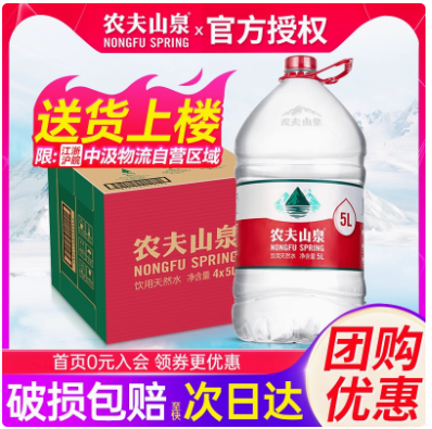 农夫山泉5升桶装水5L*4桶整箱聪明盖家庭大瓶桶装泡茶水非矿泉水