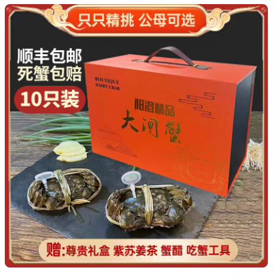 【活蟹】现货苏州大闸蟹鲜活特大螃蟹公蟹母蟹10只礼盒装阳澄晨曦