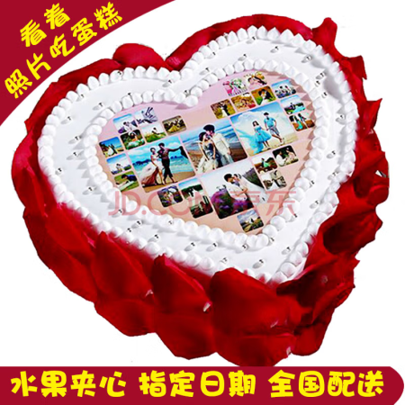 百世今生玫瑰花瓣生日蛋糕全国同城配送数码蛋糕北京深圳广州西安天津长春 玫瑰花瓣蛋糕B款 8寸(适合2-4人食用)