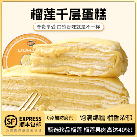 幸福西饼 榴莲千层动物奶油下午茶蛋糕生日聚会野餐甜品芒果榴芒同城配送 榴莲千层(270g榴莲肉)