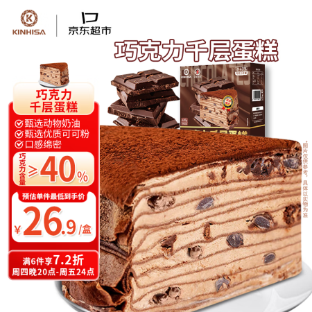 KINHISA抹茶奥奥碎千层蛋糕6英寸420g 动物奶油下午茶零食甜品生日蛋糕