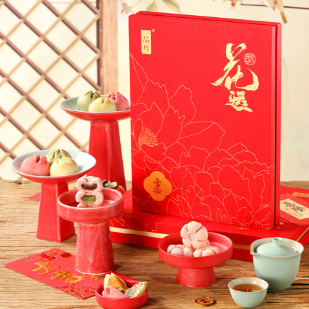 一品粤广州特产糕点年货礼盒送长辈客户过年中式点心荷花酥伴手礼 花运上上签·花酥混合装-12饼6味