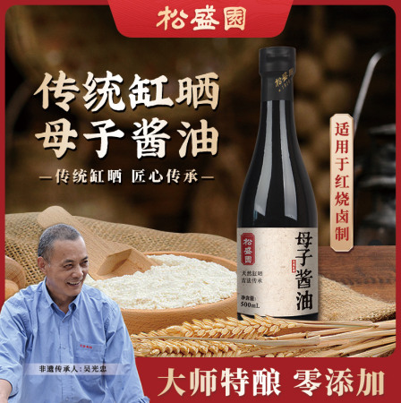 松盛园古法缸晒母子酱油浙江老字号红烧凉拌生蘸500ml红烧专用