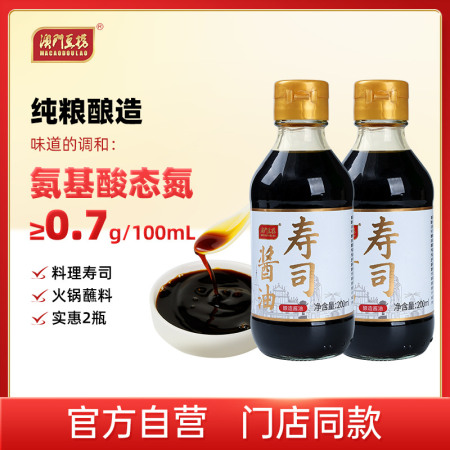 澳门豆捞寿司海鲜火锅一级酱油鱼生芥末生抽200ml瓶装酿造好酱油