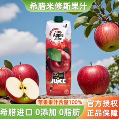 希腊进口米修斯苹果汁1L*2苹果美式轻断食果蔬汁无添加0脂饮料