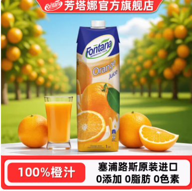 塞浦路斯进口fontana芳塔娜橙汁果汁饮料1L橙c美式轻食调酒饮品