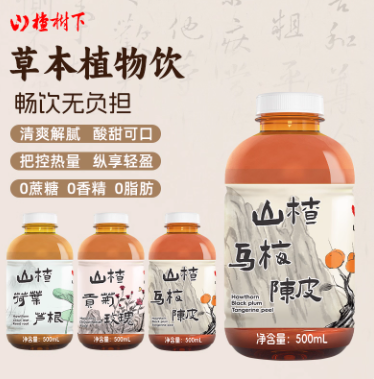 山楂树下山楂汁果汁饮料乌梅陈皮无蔗糖0脂肪0香精500ml*12瓶整箱