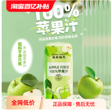 菲里维尔苹果汁复原果汁饮料小瓶便携箱装200ml*12瓶清甜果汁饮品