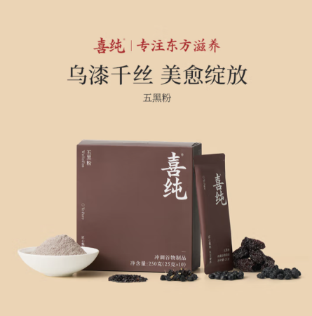喜纯五黑粉黑芝麻糊五谷代餐黑枣芝麻五黑粉营养早餐饮 一盒装250g
