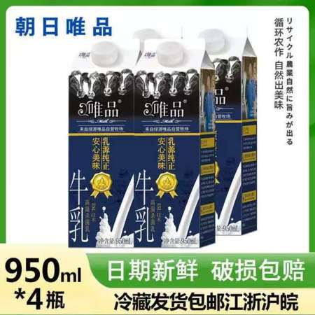 全国发货 朝日绿源唯品纯牛奶牛乳950ml 周二四六发货4瓶装餐饮用