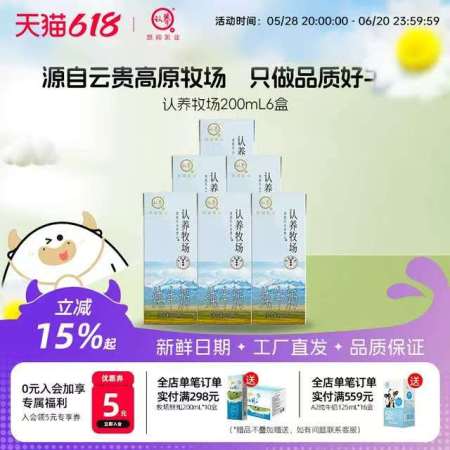 认养牧场纯牛奶200ml6盒学生牛奶成人儿童营养早餐纯奶3.2g蛋白质