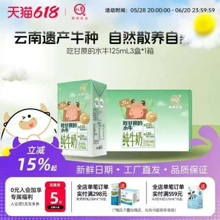 认养吃甘蔗的水牛奶125ml*18盒青少年牛奶儿童牛奶学生早餐奶mini