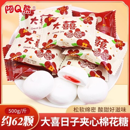 阿Q熊大喜日子夹心棉花糖喜糖结婚专用软糖婚礼糖果零食散装批发